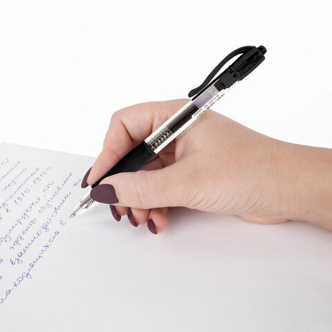 • Автоматическая гелевая ручка с резиновым упором для пальцев.
