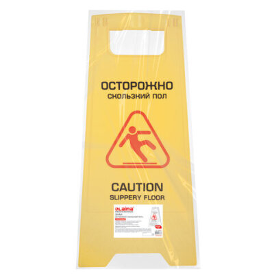 Знак предупреждающий "Осторожно! Скользкий пол!" LAIMA PROFESSIONAL предназначен для привлечения внимания и обеспечения безопасности в местах массового скопления людей. Выставляется при проведении влажной уборки.
