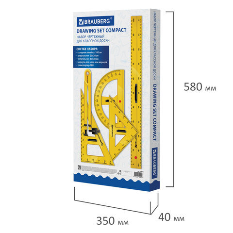 | Комплектация | 2 треугольника, линейка, транспортир, циркуль |