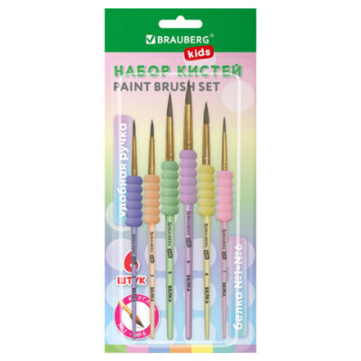Набор из шести кистей разного размера c мягкой EVA-вставкой BRAUBERG KIDS позволяет начинающим художникам решать любые творческие задачи в детском саду, школе и дома.