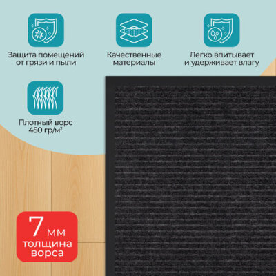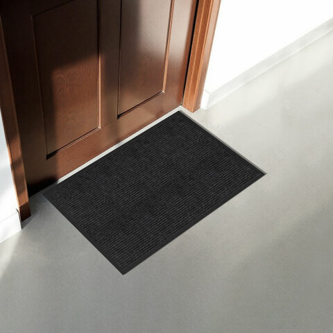 Коврик придверный 60х90 см, ЧЕРНЫЙ, влаго-грязезащитный, 450 г/м2, ребристый, PRIMILA (ПРИМИЛА) EXTRA, 701029