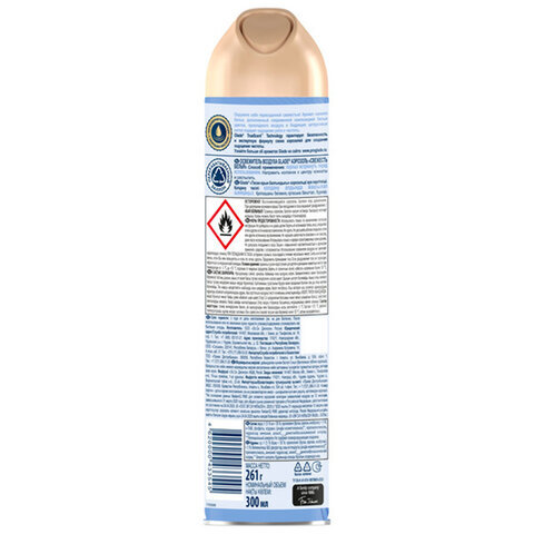 Аромат свежего белья, дополненный современной композицией белых цветов, прохладного воздуха и бодрящих цитрусовых ноток. GLADE гарантирует безопасность и экспертную формулу своих аэрозолей!