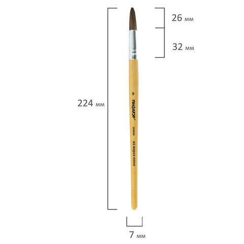 Кисть ПИФАГОР № 9 подходит для работы с акварелью, гуашью, тушью, а также для прорисовывания различных деталей рисунка. Снабжена защитным пластиковым колпачком.