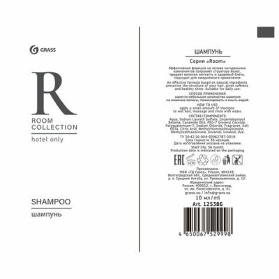 Шампунь одноразовый 10 мл, КОМПЛЕКТ 500 шт., GRASS ROOM, саше, флоупак, HR-5029