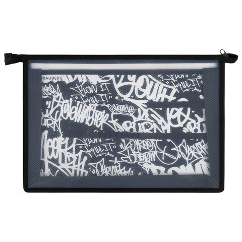 Папка для труда BRAUBERG А4, 2 отделения, пластик, молния сверху, органайзер, "Graffiti", 272215