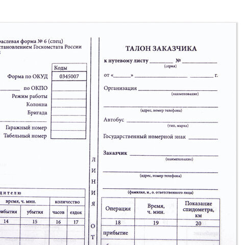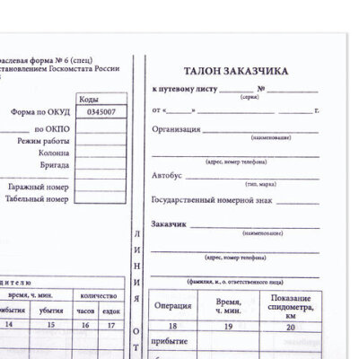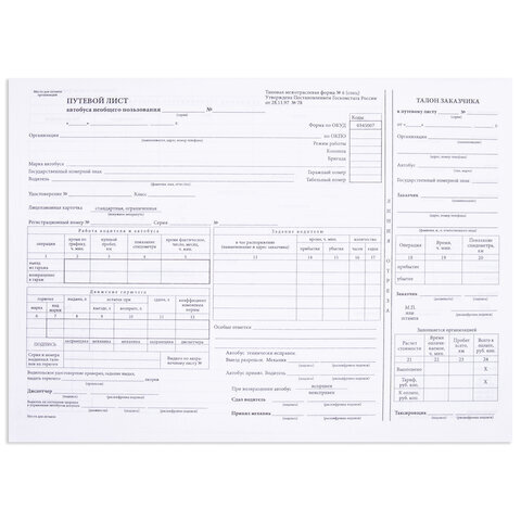 «АЛГОРИТМ»| Вид бланка | Путевой лист автобуса не общего пользования |
