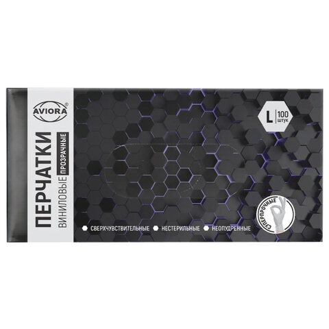 Перчатки виниловые, КОМПЛЕКТ 50 пар (100 штук), ПРОЧНЫЕ, прозрачные, размер L (большой), AVIORA, 402-639