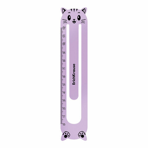 Закладки для книг пластиковые ERICH KRAUSE "Кошки", набор 4 шт., шкала 12 см, ассорти, 0,6 мм, 61228