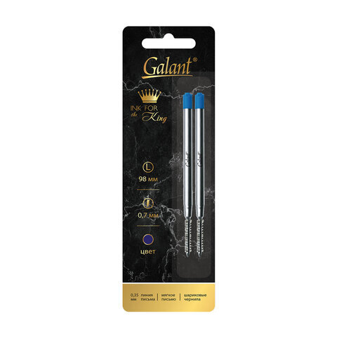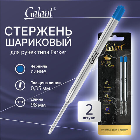 Стержень шариковый тип PARKER, СИНИЕ, КОМПЛЕКТ 2 ШТ., пишущий узел 0,7 мм, блистер, GALANT, 170387
