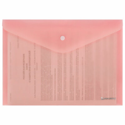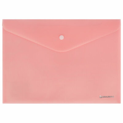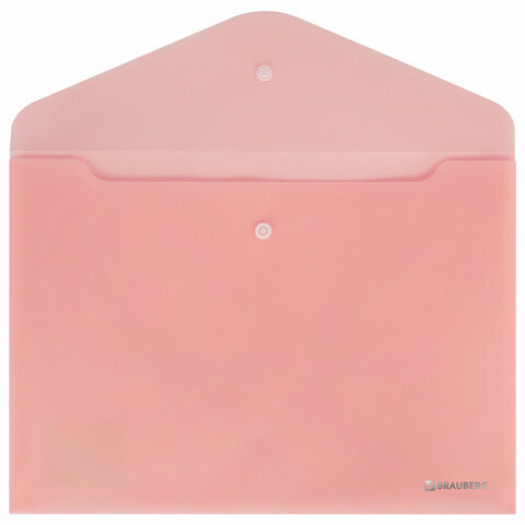 Папка-конверт с кнопкой BRAUBERG "Pastel", А4, матовая непрозрачная, персиковая, ПРОЧНАЯ 0,2 мм, 272882