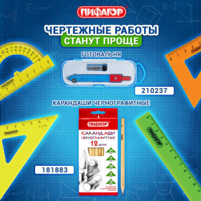 Набор чертежный геометрический ПИФАГОР предназначен для выполнения чертежных работ.