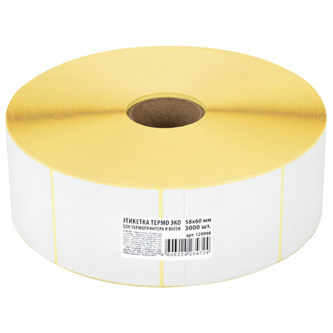 Термоэтикетки ЭКО, 58х60 мм, 3000 этикеток в ролике, 129998