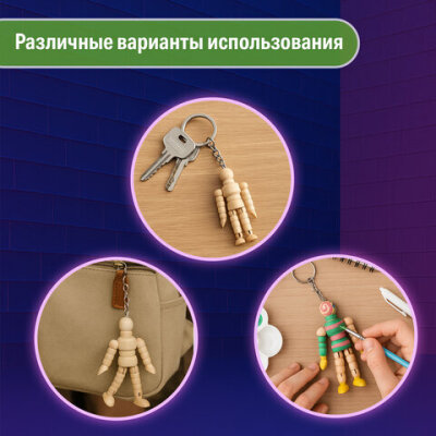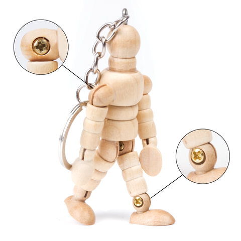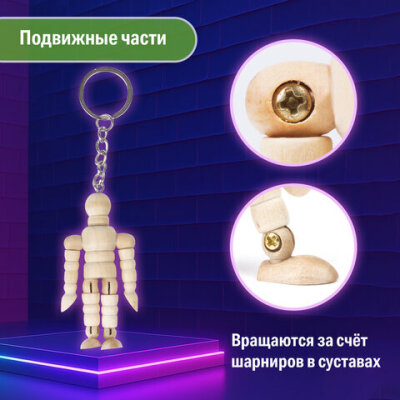Брелок для ключей "Манекен человека" BRAUBERG ART "CLASSIC", изготовленный из дерева, изображает человеческую фигуру с подвижными руками и ногами.