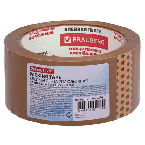 Клейкая лента упаковочная, 48 мм х 66 м, КОРИЧНЕВАЯ, толщина 45 микрон, BRAUBERG, 221687
