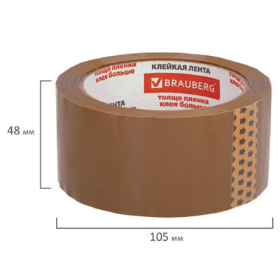 Упаковочная клейкая лента BRAUBERG активно используется в торговле, промышленности, быту и подходит для оперативной упаковки с помощью диспенсера или вручную. Отличается высокой адгезией клея (слипанием с поверхностью) и стойкостью к разрыву.