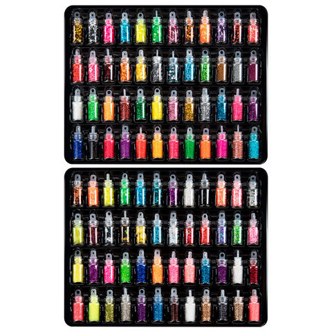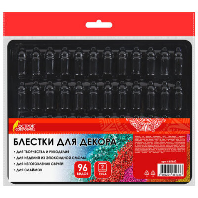 Блестки для декора НАБОР 96 видов по 2 грамма, в стеклянных тубах, ОСТРОВ СОКРОВИЩ, 665682