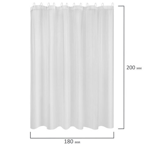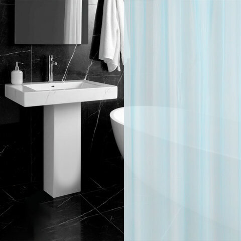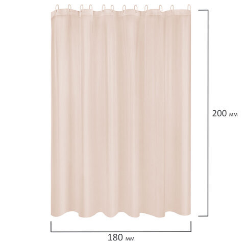 Шторка для ванной PEVA, 180х200 см, кольца в комплекте, 3 цвета ассорти (белый, голубой, коричневый), PRIMILA (ПРИМИЛА), 700073