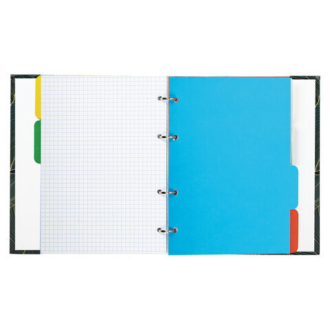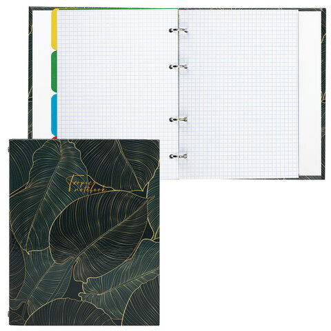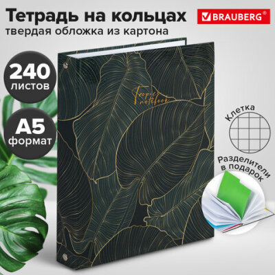 Тетрадь на кольцах А5 (175х215 мм), 240 листов, твердый картон, клетка, с разделителями, BRAUBERG, Листья, 404099