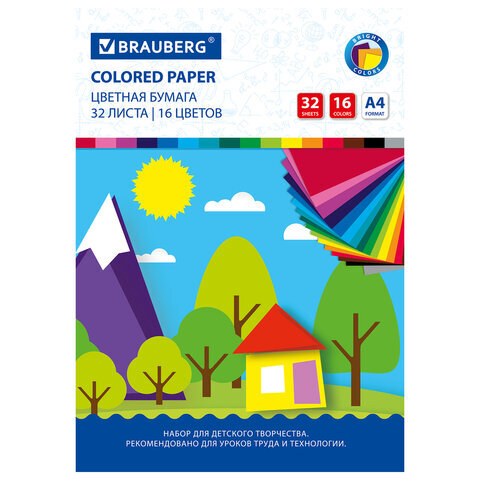 Цветная бумага BRAUBERG предназначена для детского творчества и хобби, начиная с трехлетнего возраста, а также способствует развитию мелкой моторики и фантазии ребенка. Используется не только дома, но и на занятиях в детских садах и школах.