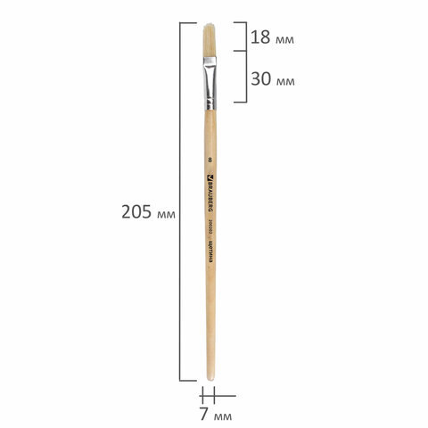 Кисть BRAUBERG, щетина, плоская, № 8, 200202