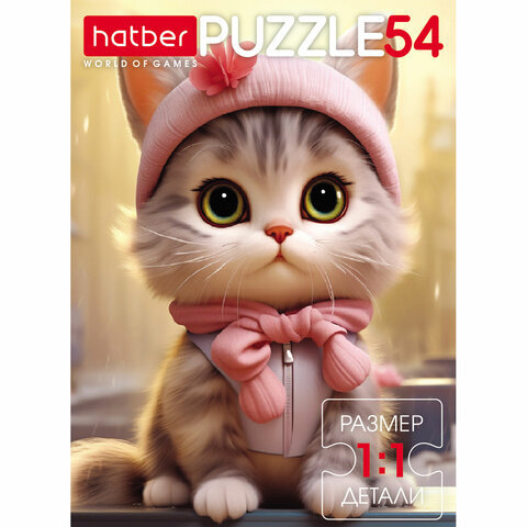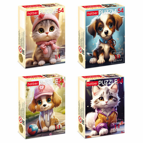 Пазл картонный 54 элемента "Милые мордашки", АССОРТИ, 175х130 мм, HATBER