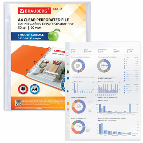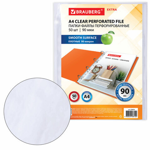 Перфорированные папки-файлы BRAUBERG "EXTRA 900" предназначены для хранения документов в папке с любым кольцевым механизмом или скоросшивателем.