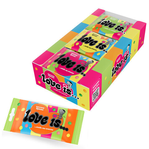 Жевательные конфеты в кислой обсыпке LOVE IS, ассорти вкусов, 42 г, 709230