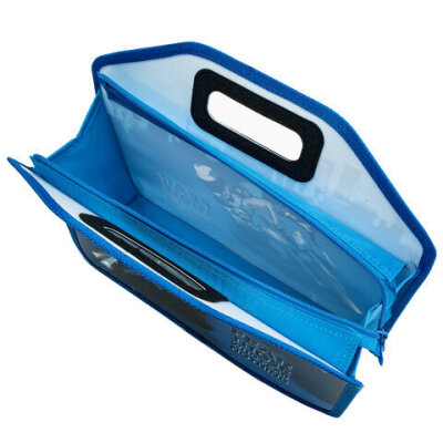 Папка-сумка на молнии с ручками ЮНЛАНДИЯ выполнена из пластика, имеет уплотненные фетром двойные ручки в корпусе, по по краям окантована тканью. Застежка-молния расположена по верхнему краю папки.