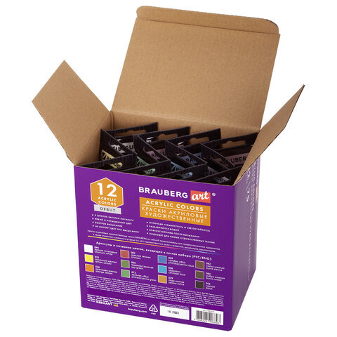 Художественные акриловые краски BRAUBERG ART DEBUT предназначены для живописи и декоративных работ.