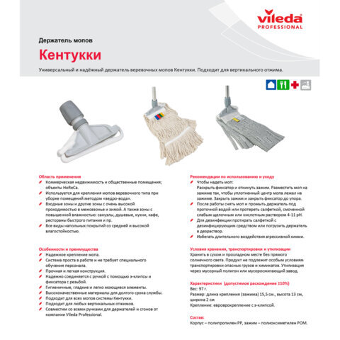 | Тип крепления насадки | зажим типа "Кентукки" |