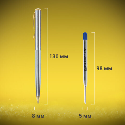 Ручка подарочная шариковая BRAUBERG Maestro, СИНЯЯ, корпус серебристый с золотистым, линия письма 0,5 мм, 143468