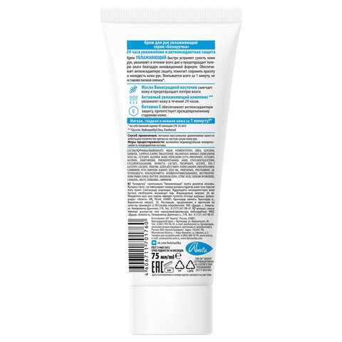 Крем для рук БЕЛОРУЧКА "Увлажняющий" с маслами и витаминами. Для всех типов кожи. Обеспечивает базовый уход.