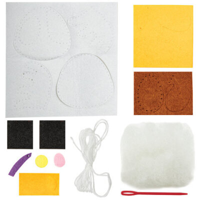 Комплектация безопасная игла, заготовки из фетра, инструкция, наполнитель для игрушки, нитки