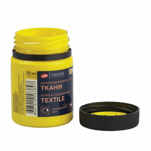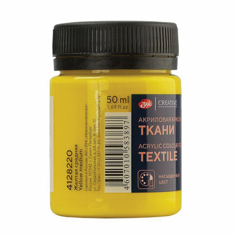 Краска по ткани акриловая "Декола", банка 50 мл, желтая средняя, Невская Палитра, 4128220