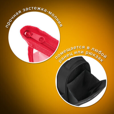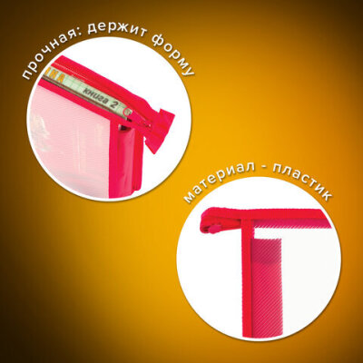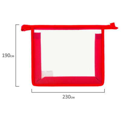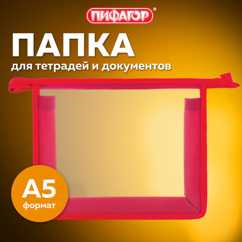 Папка для тетрадей А5 ПИФАГОР, пластик, молния сверху, прозрачная, красная, 228220