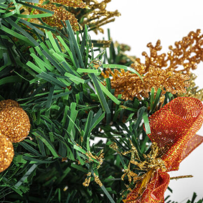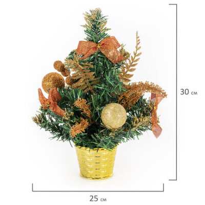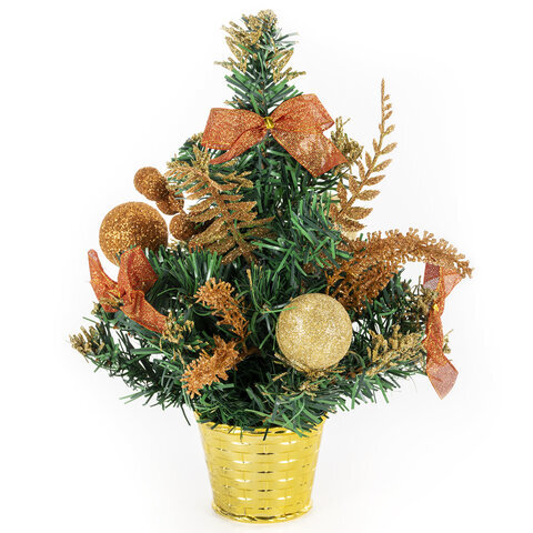 Ель искусственная декоративная 30 см, ПВХ, цвет украшений: медно-золотистый, ЗОЛОТАЯ СКАЗКА, 591326