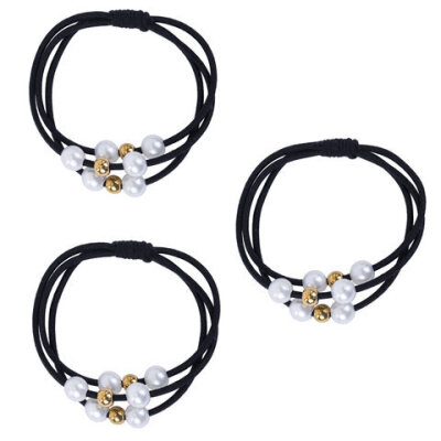 Резинки для волос НАБОР 3 шт., 0,2х14 см, с жемчужинами, чёрные, MONTE VITA (МОНТЕ ВИТА), 457053