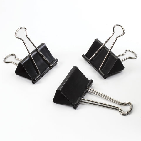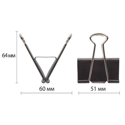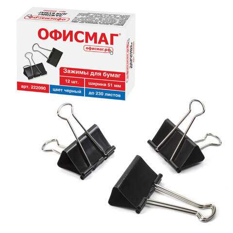 Зажимы для бумаг ОФИСМАГ, КОМПЛЕКТ 12 шт., 51 мм, на 230 листов, черные, картонная коробка, 222090