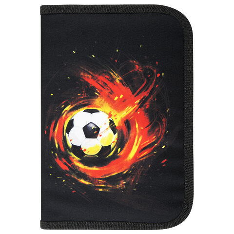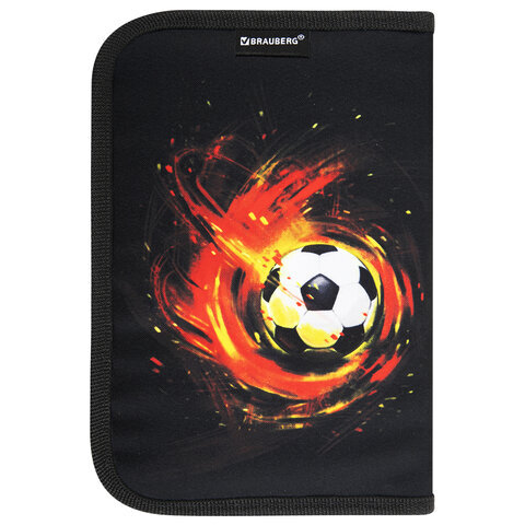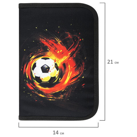 Пенал BRAUBERG с наполнением, 1 отделение, 1 откидная планка, 24 предмета, 21х14 см, "Fireball", 270723