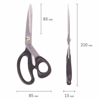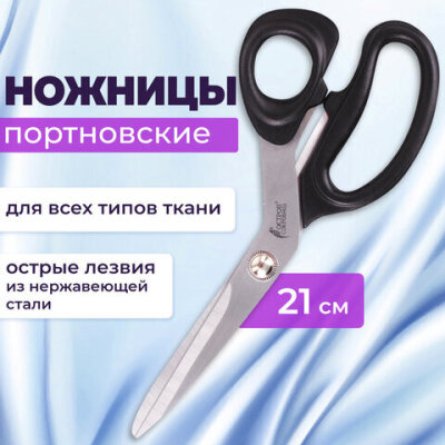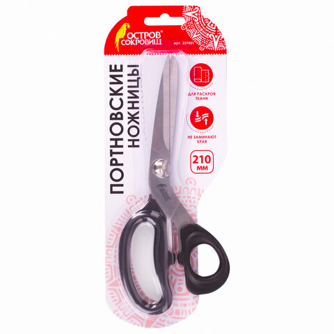 Ножницы портновские ОСТРОВ СОКРОВИЩ КЛАССИК, 210 мм, черные, блистер, 237451
