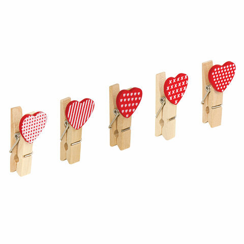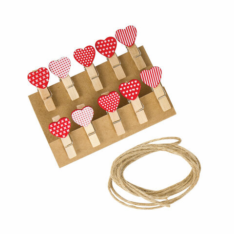 Прищепки декоративные "Сердечки", 10 штук, 3,5 см, ассорти, со шпагатом, ОСТРОВ СОКРОВИЩ, 662674