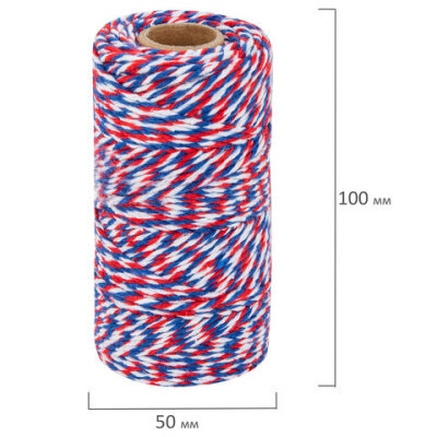 Нить хлопчатобумажная для прошивки документов, ТРИКОЛОР, диаметр 1,6 мм, длина 120 м, BRAUBERG, 700364