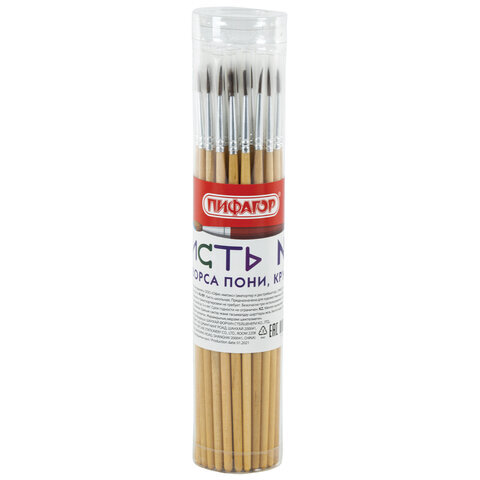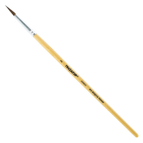 Кисть ПИФАГОР, ПОНИ, круглая, № 3, деревянная лакированная ручка, с колпачком, 200832