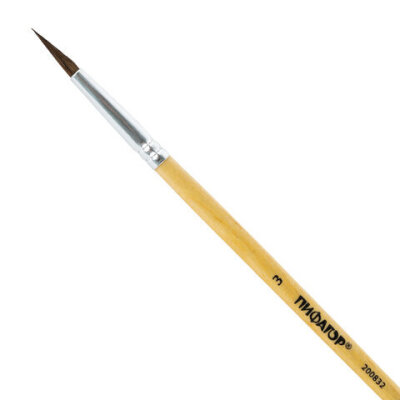 Кисть ПИФАГОР № 3 подходит для работы с акварелью, гуашью, тушью, а также для прорисовывания различных деталей рисунка. Снабжена защитным пластиковым колпачком.