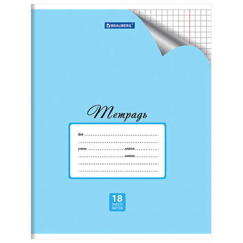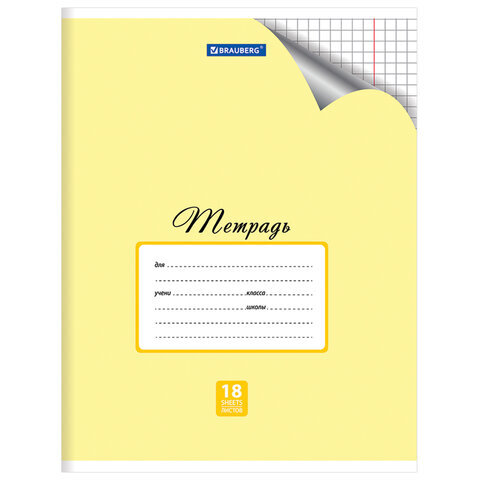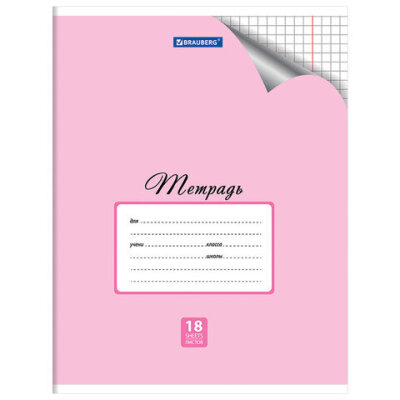 Тетрадь 18 л. BRAUBERG "ЭКО", клетка, обложка картон 170 г/м2, ПАСТЕЛЬНАЯ С УГОЛКОМ, 402804
