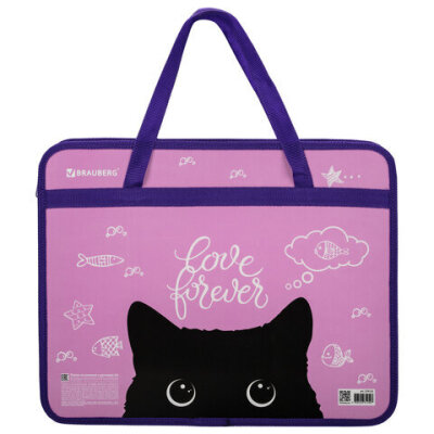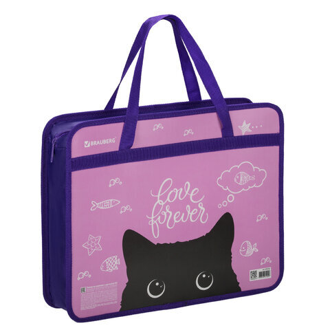 Папка на молнии с ручками BRAUBERG А4, 1 отделение, пластик, 80 мм, "Black Cat", 270122