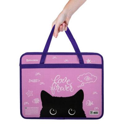 Папка на молнии с ручками BRAUBERG А4 "Black Cat" предназначена для транспортировки и хранения канцелярских принадлежностей и учебных пособий. Папка защитит содержимое от замятий и повреждений. Идеально подходит для внешкольных занятий.