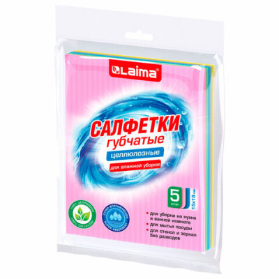 Губчатые салфетки LAIMA – ваш идеальный помощник в уборке! Используются во влажном виде, супервпитывающие, не оставляют разводов, обеспечивают надежную чистоту в вашем доме.