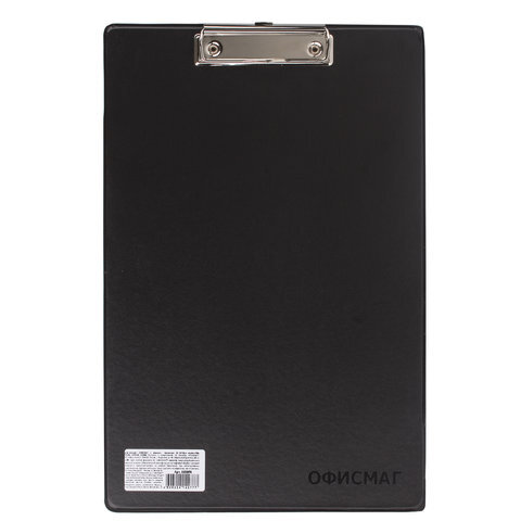 Доска-планшет ОФИСМАГ с прижимом А4 (230х350 мм), картон/ПВХ, РОССИЯ, ЧЕРНАЯ, 225986