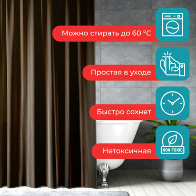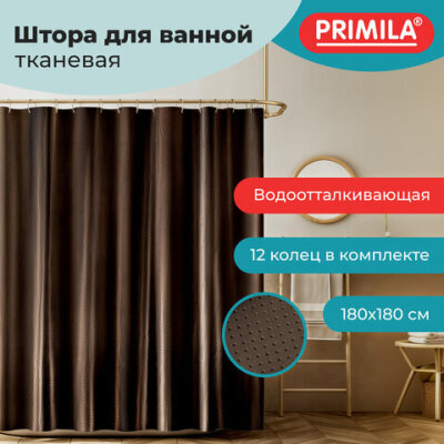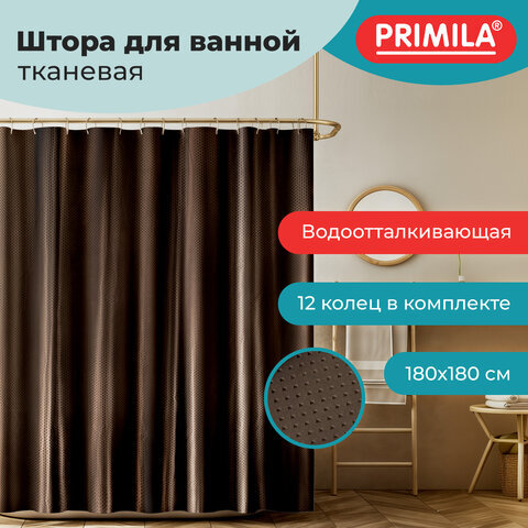 Шторка для ванной ПОЛИЭСТЕР, 180х180 см, кольца в комплекте, КОРИЧНЕВЫЙ БРИЛЛИАНТ, PRIMILA (ПРИМИЛА), 700091